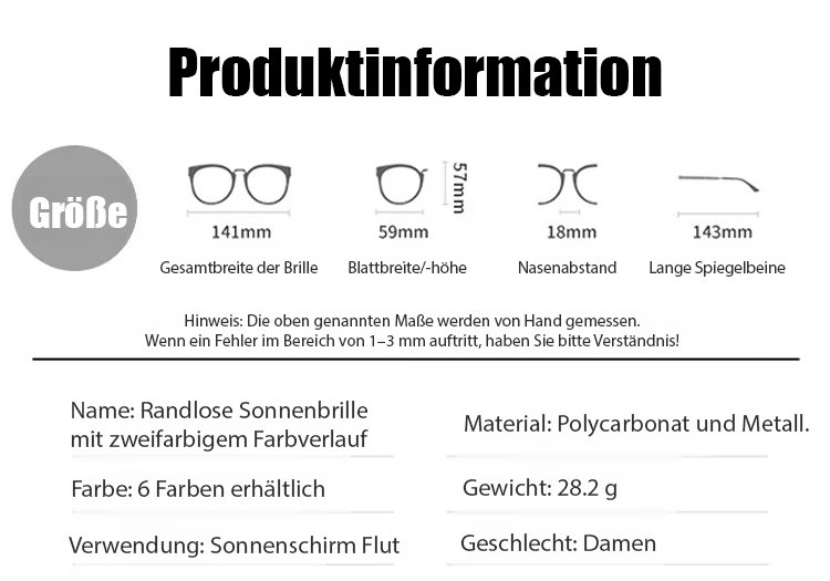 Rahmenlose Sonnenbrille mit zweifarbigem Farbverlauf